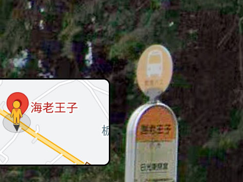 「この付近は「恵美内」と書いて「えびうち」という地名だがなぜかバス停だけが「海老王子」と表示されているのだとか」(ナニコレ珍百景公式ページ)。海老と王子の組み合わせはなんだかほほえましいですが、末尾に「王子」と付く○○王子は、和歌山県の熊野古道周辺にたくさんあり(元々は神社で、参詣者の庇護の場所)、バス停もいくつか存在します。 GoogleStreetView |