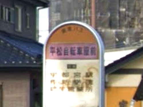 平松は住所です。近くには別の名前の自転車店があるので、そちらがバス停名の由来かもしれません。 GoogleStreetView |