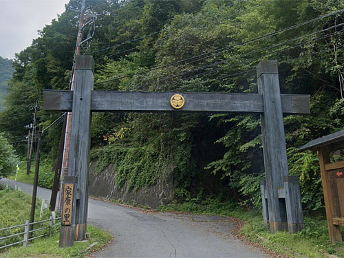 なかなかの山中に家康の里がありました。三つ葉葵の紋所が入った、冠木門風の門もあります。 GoogleStreetView |