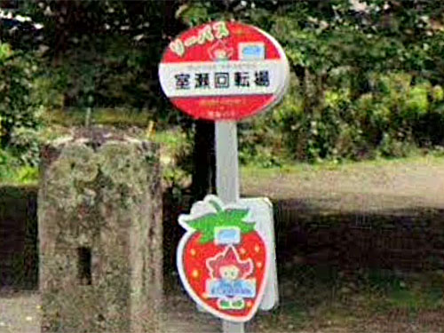 秋田県のように、栃木県でもバスの折り返し場所を「回転場」と呼ぶことがあるようです。このバス停標はいちごのマークがかわいいですね。鹿沼市はいちご栽培やいちご狩りが盛んなのだそうです。 GoogleStreetView |