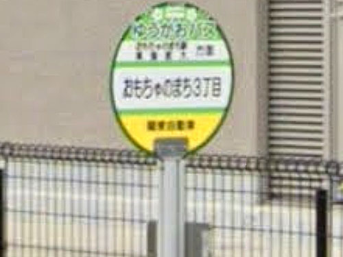 おもちゃのまち駅があることは良く知られていますが、「おもちゃのまち3丁目」という表記のバス停はまた別の味があるように思います。この他に「おもちゃのまち5丁目」というバス停があります。「おもちゃのまち」が住所になっています。 GoogleStreetView |