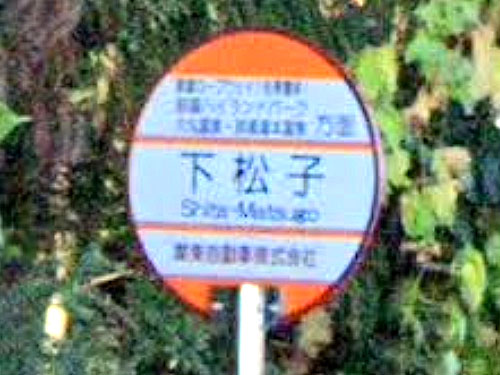 姓名のようにも読めるバス停です。「しも・まつこ」さん。 GoogleStreetView |