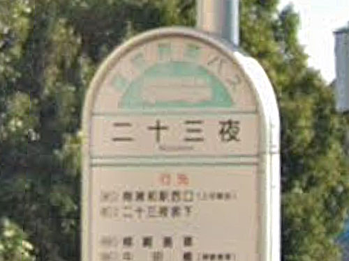 二十三夜とは不思議な名前ですね。住所にはなっていないそうです。「室町時代初期に扇谷(おうぎがやつ)上杉氏と小田原の北条氏による争いが絶えず、農民らが戦禍に巻き込まれたことが記されている。こうした災いを鎮めたかったのか、特定の月齢の夜に集まり、経などを唱えて悪霊を追い払う「月待(つきまち)信仰」で特に普及した「二十三夜講」が行われたとされ、バス停の名称につながったようだ」(産経)。「「二十三夜」を降りてすぐの場所に二十三夜供養塔がある」そうです。茨城県水戸市には二十三夜尊と呼ばれるお寺があります。 GoogleStreetView |