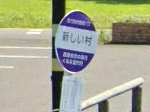 なにかの施設の名前であろうとは推測できますが、バス停名に「新しい村」と書いてあると映画か小説にでも出てきそうな不思議な印象があります。「「農」をテーマとした「生産」や「消費」、「農業体験」などを通して、歴史に学び、自然と向き合い、互いに助け合いながら暮らす社会を築いていく場」(公式ページ)。 GoogleStreetView |