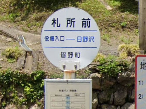 同じく秩父三十四観音の札所そばのバス停ですが、重要なお寺の前だけあってか、バス停はいさぎよく「札所前」だけの名前です。打ち納め、あるいは結願(けちがん)のお寺、札所三十四番水潜寺です。秩父三十四観音は、秩父市だけでなく、横瀬町、小鹿野町、皆野町にまたがっています。 GoogleStreetView |