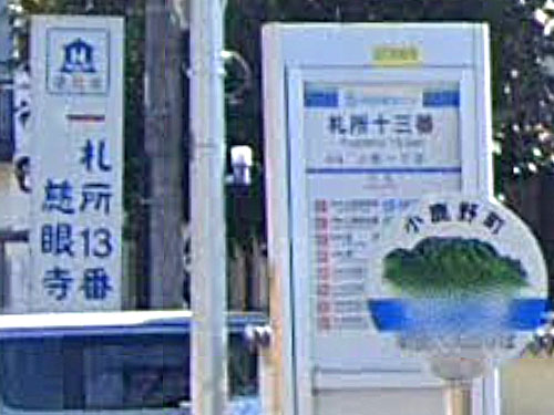 西国三十三観音、東国三十四観音と並んで有名な、秩父三十四観音(ここまでで百観音)の十三番札所慈眼寺近くのバス停であり、お寺の名前を入れず「札所十三番」で通じるということでしょう。ちなみに私は両親と自家用車で秩父三十四観音を巡礼しましたが、車か貸切タクシーなら3日あれば普通は回れると思います。写真の手前に「小鹿野町」の記載があるバス停がありますが、小鹿野町営バスが乗り入れてきています。 札所十三番の他、札所一番、 札所十番、 札所十七番入口、 札所二十番入口、 札所二十一番、 札所二十二番入口、 札所二十三番登り口、 札所二十四番、 札所二十九番入口バス停があります。 GoogleStreetView |