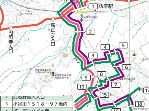 ![]() GoogleStreetView(2019,小谷田1518-97地内) ![]() 入間市内バス路線図 ![]() GoogleStreetView(宮寺425番地内) |
