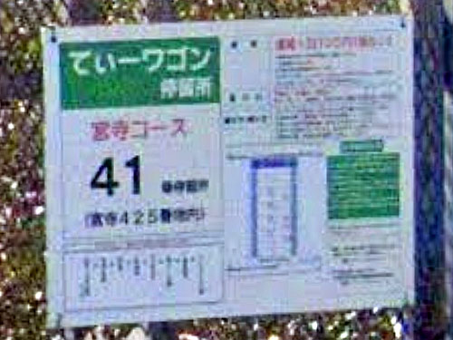 吉祥寺駅から以前「都民農園セコニック」行きのバスが頻繁に出ていて、セコニックという名前の農園だろうか、など、どんなところか興味がありました。調べてみると、バス停の場所は都内でもなく(埼玉県座間市)、都民農園は存在せず(ここでは実現しなかった)、セコニックは社名ですが工場はすでにここにない(移転済みで跡地はショッピングセンター)という、色々と裏切られる(笑)状況でした。また都民農園セコニック行きのバスはほとんどが2つ先の新座栄(折返し所)まで延長されたため(Wikipedia)、2025年現在では始発便1本と夜に9本の、計10本だけになっており、行き先を目にする機会が減っています。 GoogleStreetView |