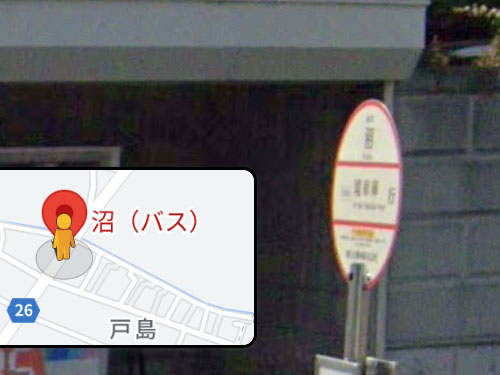 シンプルです。沼バス停の所在地は、もともと安戸沼または倉松沼と呼ばれていた場所を江戸時代に干拓したところのようです。ちなみに干拓地内にある大島新田調整池は、都市化に伴う倉松川の氾濫を防ぐために干拓地を掘り戻して池にした珍しいパターンのようです。(Wikipedia) GoogleStreetView |