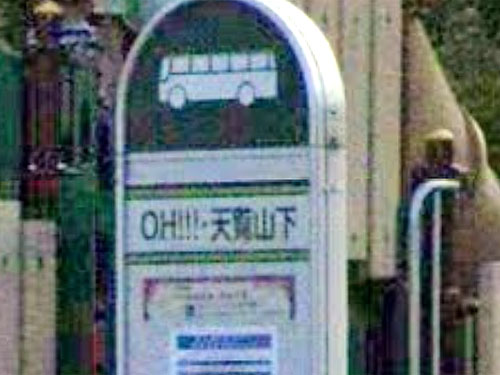 天覧山下バス停の近くに「OH!!!」(OH!!!~発酵、健康、食の魔法!!!~、発酵のテーマパーク)という施設ができたため、このような名前に変わったようです。 天覧山は標高195m、このバス停から20分ほどで手軽に登れる山です。明治天皇が山頂から軍の演習を総監したことからこの名に変わりました。コミック・アニメ「ヤマノススメ」に何度も登場し、「聖地」の1つに数えられているようです。私も何度か登りました(笑)。 GoogleStreetView |