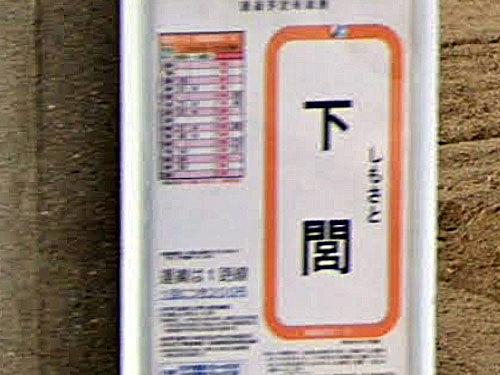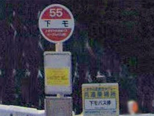 読み方を変えて「しもならときか」とすると、姓名のように思えるバス停です。「「平」の字には「ナラす」の意味があり、平らにする→ナラすから出たものと推測される。平らな地形からきた地名と推測されている。または、中奈良にある奈良神社の祭神「奈良別命(ナラワケノミコト)」からおこった地名とする説もある」(奈良公民館公式ページ)。「時花」の由来ははっきりとは分かりませんでした…。 GoogleStreetView |