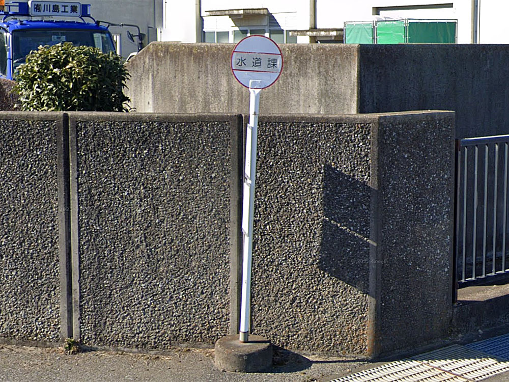 「水道局」「浄水場前」といったバス停は見かけますが、「課」のつく「水道課」というバス停は珍しいかと思いました。 GoogleStreetView |