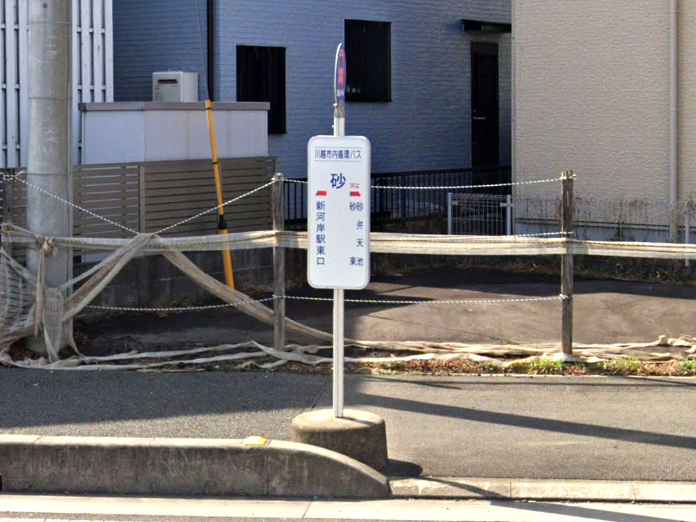 一文字バス停はある程度ありますが、「砂」は珍しいと思います。「砂」(昔は砂新田、砂村もあり)は地名ですが、由来は分かりませんでした…。 GoogleStreetView |