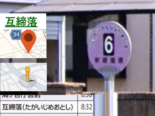 地番付きのバス停名としてはかなり長いほうだと思います。ただ、2019年のGoogleStreetViewでしかバス停標は見当たらず、しかも名称がはっきり写っていないので残念です…。市内にあるはずの「宮寺375番地内」(GoogleStreetView)「宮寺425番地内」(GoogleStreetView)はありましたが、「新久845番地内」バス停標は見当たりませんでした。 GoogleStreetView(2019、小谷田1518-97地内) |
