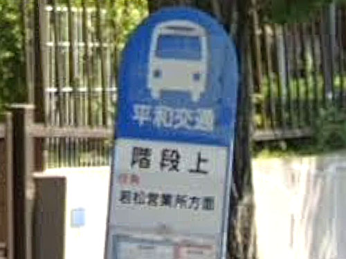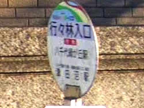 1文字バス停シリーズです(ここは読み方も1文字)。短い名前が特徴です。何らかの地形が木に例えられたのかも知れません…。「加」という地名もあるそうですが、バス停は「加二丁目」「加二号公園前」など他の単語がついています。 GoogleStreetView |