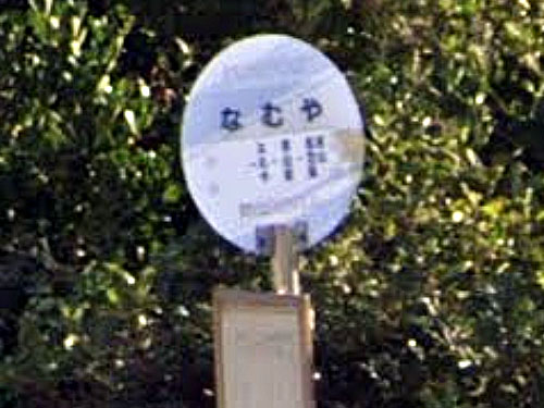 「南無谷」が公的住所になっています。13世紀に僧・日蓮が2度ここを訪れ、「村中に日蓮宗が広まり、村の名が南無妙法谷村(なむみょうほうやむら)となりましたが、長すぎるので南無谷となったのです」(南房総市公式)。バス停の表記がひらがなになっている理由は分かりませんでした…。 GoogleStreetView |