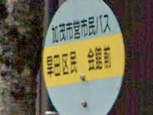 「旱」は「早」と字体が似ていますが、「カン、ひでり」と読み、読みの通りひでりのことです。ここは「旱」がつく唯一のバス停のようです。ひでりに苦しんだ田んぼがあったのかも知れませんが、地名の由来は読み方も含めて分かりませんでした…。