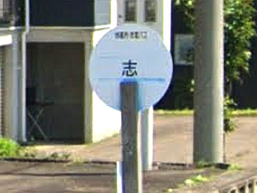 一文字バス停「志」で、読みも一文字の「し」です。由来は分かりませんでした…。 GoogleStreetView |