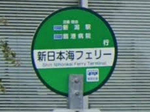 こちらも「新潟港」などの地物ではなく、直球勝負で汽船会社の名前がバス停名になっています。新日本海フェリーと佐渡汽船の埠頭はかなり離れているので(タクシー約10分、バス利用の場合徒歩込みで最短30分程度)、新潟駅からのバスの誤乗を防ぐためには社名を使った命名法もあっているのかも知れません。 GoogleStreetView |