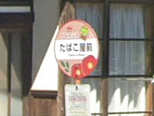 「たばこ」「煙草」がつくバス停はいくらかありますが、シンプルに「たばこ屋前」はここだけのようです。ただ、ここのStreetViewではたばこ屋さんが見当たりません。