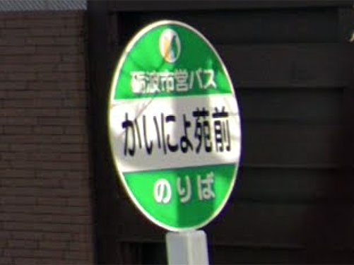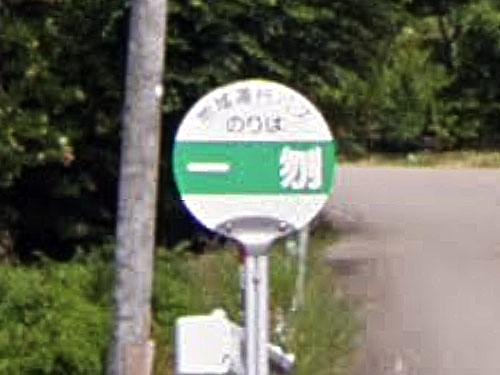 「金さん銀さん」はグループホームとのこと。いい名前ですね。バス停標の丸板には「(金さん銀さん前)」まで表示されていないのが残念。NavitimeとGoogleMapsにはフルで掲載されています。 GoogleStreetView |