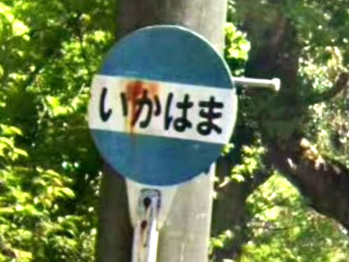 山の中に突然「いかはま」というバス停が現われます。実は「いかはまの湯」という湯治宿があるとのこと。山の中なのに「いかはま」と名乗る理由は調べても分かりませんでした…。 GoogleStreetView |