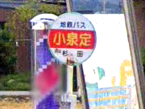 読み方に少し迷いますね。姓名のようにも思えるバス停です。「こいずみじょう」さん、「こいずみさだ」さん。調べましたが由来は分かりませんでした…。 GoogleStreetView |