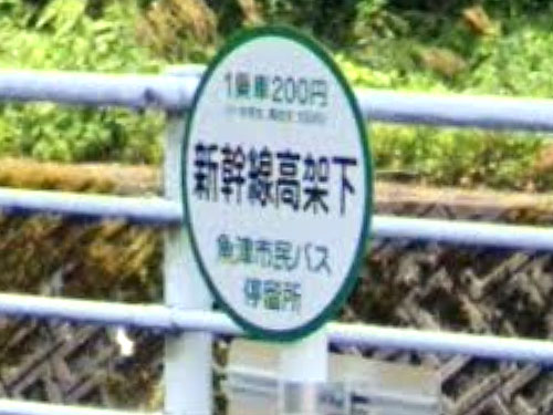 停留所ポールが立っておらず残念です。()内は正式な停留所名ではないようなのですが、「新幹線」と「ゴミステーション」のマッチングが珍しいと思います。 GoogleStreetView |