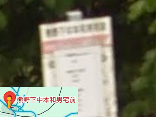 石川県では個人宅名のバス停は多くないようです。七尾市では他に、「山戸田津梅隆司宅前」(やまとだつばいたかしたくまえ)。 GoogleStreetView |
