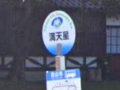 ログヴィレッジだそうで、よい名前を狙って付けた場所というのがよくわかりますが、それでもその名を使った「満天星」というバス停は素敵です。 GoogleStreetView |