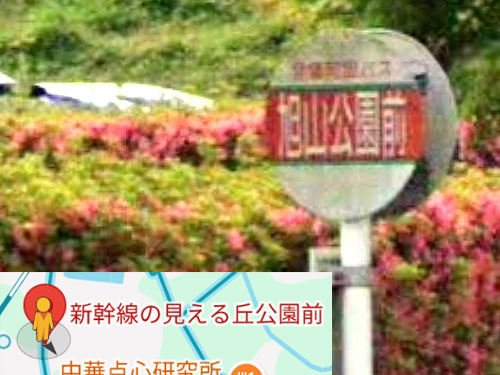 バス停としては、「新幹線」と「公園」という文字列が入る希少な名前です。この公園じたいは、元は旭山2号公園でしたが、北陸新幹線の建設で隠れた眺望地点として話題になり、2014年に新幹線の見える丘公園に改称したとのこと。通常は、最高時速260キロで走る新幹線を約17秒間眺めることができるそうです。 GoogleStreetViewは2022年撮影なのにバス停標は元のままのようですが、GoogleMapsは新しい公園名を用いていますし、Navitimeも同様です。 GoogleStreetView |