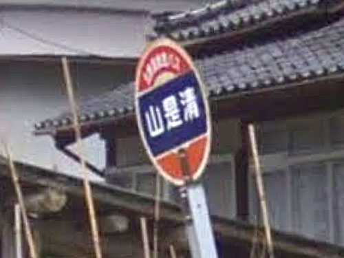 バス停は廃止されています。元の是清村に「山」をつけて山是清(やまこれきよ)だそうで、公的住所になっています。元は白山山麓の尾添(おぞう)村民が、加賀藩と越前藩の争議に巻き込まれ、1669年にやや離れたここへの移住を余儀なくされたそうです(近いとまた争いになるので)。村の名前の先頭に付けた山はおそらく白山の山だろうとのこと。ちょっと不思議なバス停名だったので気になりました。 GoogleStreetView(2015) |