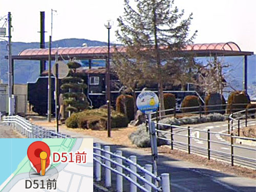 | 長野県 | D51前(でぃーごーいちまえ) | 諏訪市 | ![]() GoogleStreetView |