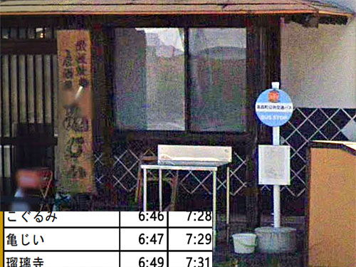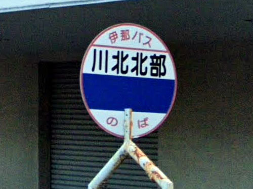 「こんにゃく」が付くバス停はレアです。ここはこんにゃくの加工場です。「現在では希少価値ともいえる在来種の生芋だけを使った手作りの矢筈コンニャク…」(村長あいさつ)。バス停が奥まったところにあってバス停標の名前が見えないのが残念です…。 GoogleStreetView |