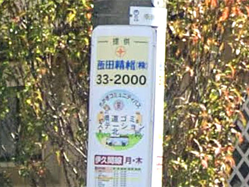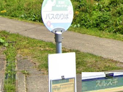 「ゴミステーション」が付くバス停はレアです。その上、NTTの電柱にバス停の看板がついています。スポンサー企業が「提供」という形でついています。スポンサーの集まり具合によるかも知れませんが、全国で地方バス会社の省力化が求められる今、電柱にバス停をつける形態はもっと流行ってもいいのではないかと思います。 GoogleStreetView |