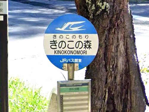 きのこの山ではなく「きのこの森」バス停がありました(笑)。「きのこの森」がこのエリアを指しているのかどうかは分かりませんでした。約1Km入ったところに「きのこの森ふわり家」という和食処があったそうですが、閉業とのことです。 GoogleStreetView |