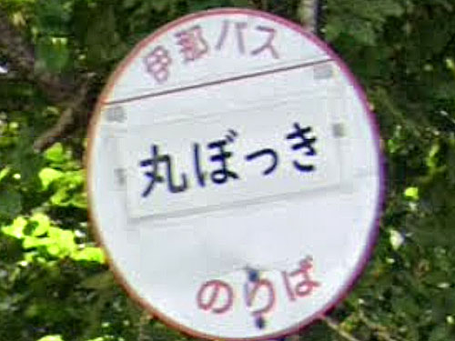 以前から良く知られる珍名バス停です。近くに「女体」集落あり。「由来は諸説あり、山並みが横たわる女性に似ていた、女人禁制のお寺があり、女性は待っていた→女待が転じたなどなど」(ジョルダン)。 GoogleStreetView |