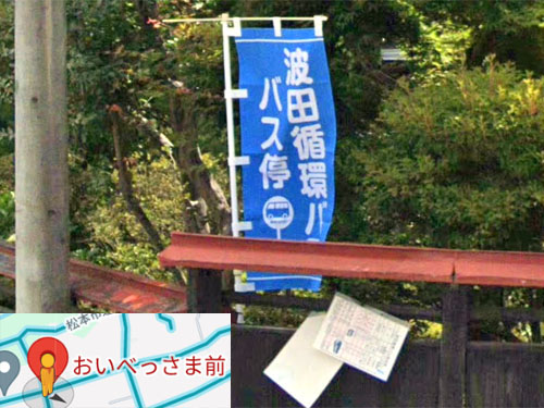 | 長野県 | ぱおぱお前 | 安曇野市 | ![]() GoogleStreetView(バス停標、バス乗り場不明) |