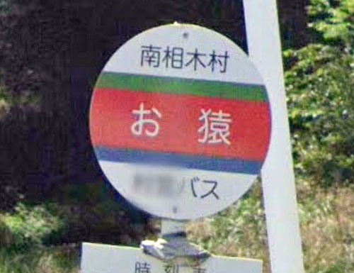 ユニークな名前ですね。周辺には確かに野生の猿はいるそうですが、バス停の名前の由来は分かりませんでした…。なお、村には1つしか信号機がないそうです(以前の話ですので今は増えているかも知れません)。 GoogleStreetView |
