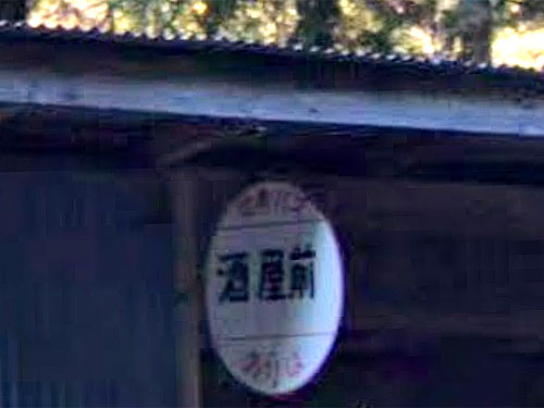 波トタンぶきの待合小屋の軒先に丸板がぶらさがっている、なかなかよい雰囲気です。そばに昔の小さな店の建物がありますが、酒屋だったかどうかは分かりません。 GoogleStreetView |