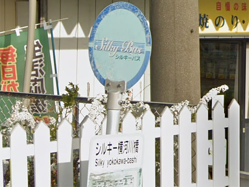 「シルキー」が付いたり「横河川橋」をよこかわばしと読んだりとちょっと情報が渋滞気味なのですが。走っているのはシルキーバスなのですが、このバス停だけ唯一「シルキー」が付いています。理由は分かりませんでした…。 GoogleStreetView |