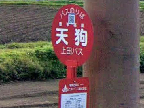 ずばり天狗です。近くには天狗ゲレンデがあります。ただ、由来は分かりませんでした…。信州は天狗伝説が多い場所だそうです。 天狗バス停のそばには、なぜかシマウマの像がありました。 GoogleStreetView |