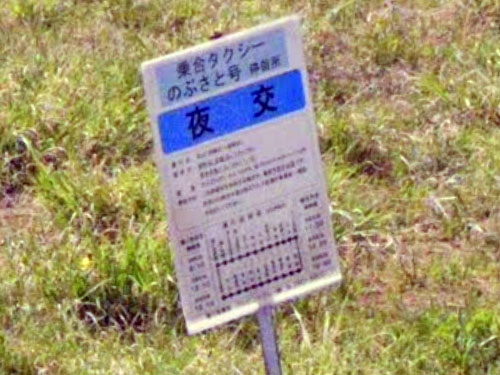 夜の交わりではありません(苦笑)。 長野県山ノ内町夜間瀬に入った一族が夜交氏(よませし)を名乗ったそうです。このバス停の場所は長野市川中島町となりますが、関係があるのかも知れません。 GoogleStreetView |