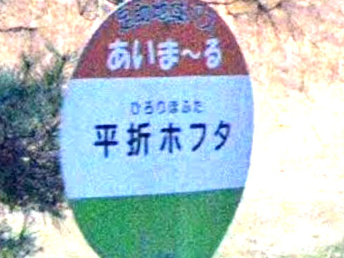 「平折」を「ひろり」と読むのは珍しいですし、「ホフタ」も聞かないですね。平折ホフタは住所になっているそうですし、バス停の所在地の住所は正確には「平折コキウ」だそうです。ホフタもコキウも由来は分かりませんでした…。バス停はありませんが、近くには、鬼クゴ、猿クゴ、ハマイバ、アラト、子バタ、ノリゴイ、タラクゴ、ススミ木、ソンデ、牛コロビ、ユルギ岩、ナンザ、大ナメと、カタカナを交えた不思議な地名がたくさんあります。 GoogleStreetView |