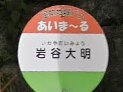 姓名のように読めるバス停です。「大明」と書いて「ひろあき」さんと読む男性が多いそうなので、「いわたに・ひろあき」さんと読めるかも。「岩屋町大明」が公的住所になっています。県内の、姓名のように読めるバス停:下臼子、上臼子