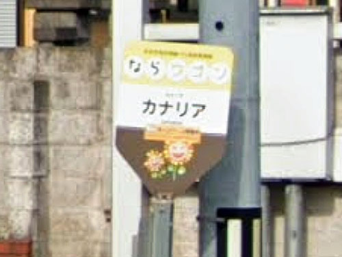 「カナリア前」ではなく、このバス停はズバリ「カナリア」です。「カット&パーマ カナリア」(カナリア理容)というお店があります。 GoogleStreetView |