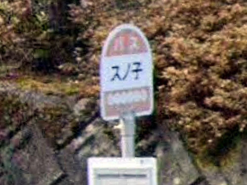 不思議な名前のバス停ですが、由来は分かりませんでした。福岡県にも「すの子」バス停があります。 GoogleStreetView |