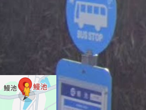 バス停の名前が姓名のように見えます。由来は分かりませんでした…。 GoogleStreetView |