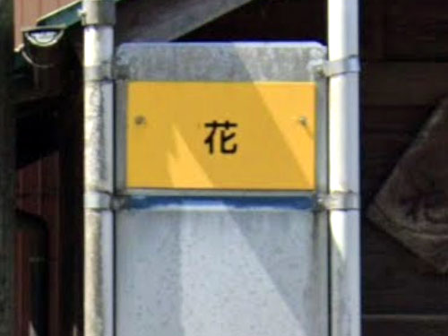 意外なことに「花」1文字のバス停はレアです。今のところここしか把握できていません。公的住所になっています。由来は分かりませんでした…。 GoogleStreetView |
