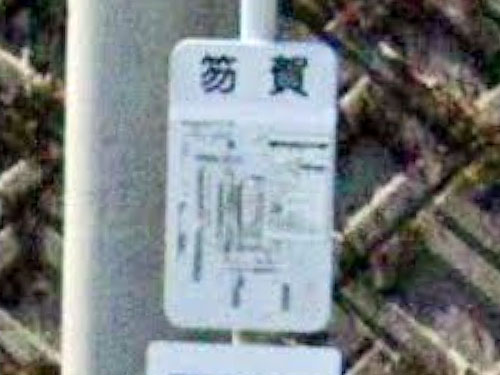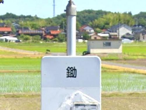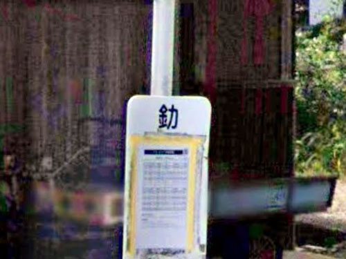 1文字バス停です。住所にもなっています。字としては農機具の鋤です。調べましたがこの字が使われている由来は分かりませんでした…。 GoogleStreetView |